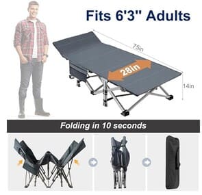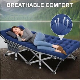 • Cot for Sleeping with Detachable Soft Pad: The included soft mat adds comfort for better sleep; remove it in hot weather for a breathable surface while camping, traveling, or resting at home.