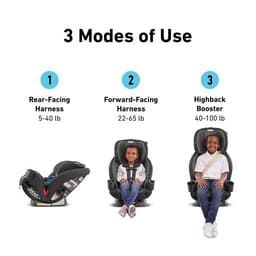 • 3-in-1 Design: Converts from rear-facing (5–40 lb) to forward-facing (22–65 lb) to highback booster (40–100 lb)