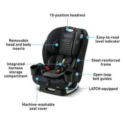 • Easy Adjustments: No-Rethread Simply Safe Adjust™ Harness changes harness and headrest height together.